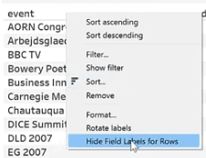 For example in a table we might click on the Field Labels for Rows and click Hide.