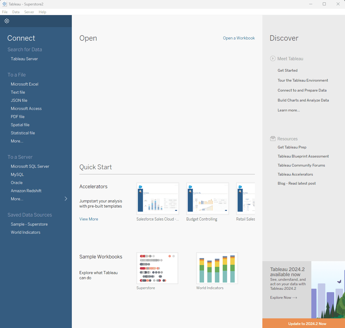 Another thing that can be confusing in Tableau is figuring out how to connect to different kinds of files.