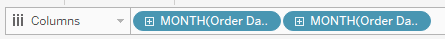 If we want MONTH(Order Date) again, instead of dragging it onto the Columns shelf from the Data pane, simply do Ctrl and drag the pill over.