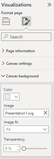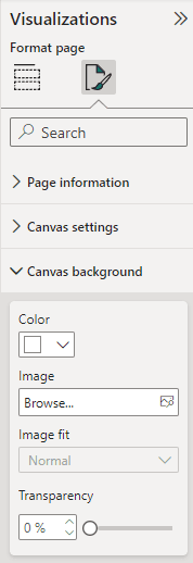 1. Under Canvas background, in the Visualizations pane, change the color of the background to be able to clearly see the borders of the visuals.