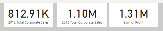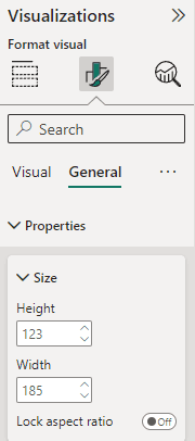 2. When we talk about alignment we also have to consider the size of the visuals. For example, we would like the three cards at the top to be the same size. Select the cards, head to General under Format visual, Properties, then change the width and the height.