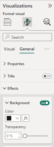 5. Change the background of all visualizations to match the colour of the background from your PowerPoint under Effects in General, Format visual.