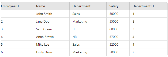 Let's say we have a table called Employees, and a table called Departments.