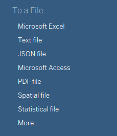Open Tableau. In the left pane, under To a File, choose Microsoft Excel and open your data.