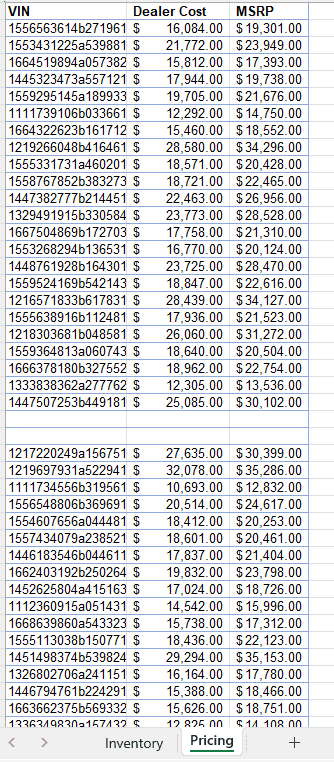 Now, we want to merge our two datasets, Inventory and Pricing.