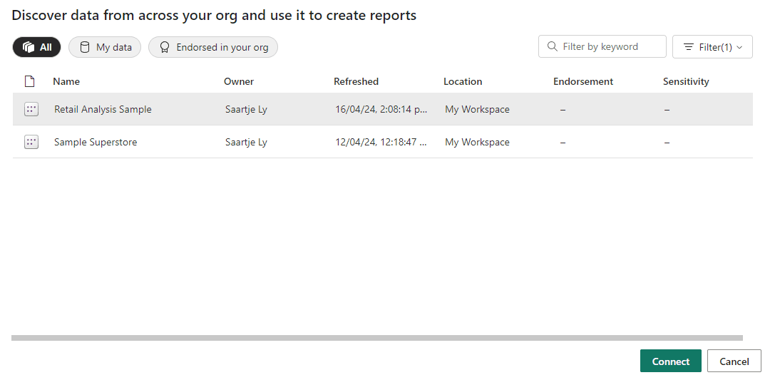 5. Select your desired dataset, and click Connect
