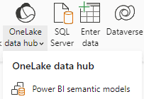 4. Next, in the Home tab click the dropdown for OneLake data hub, and select Power BI semantic models