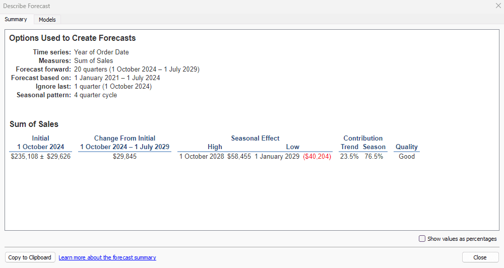 Right click on our Forecast again, hover over Forecast, and this time choose Describe Forecast.