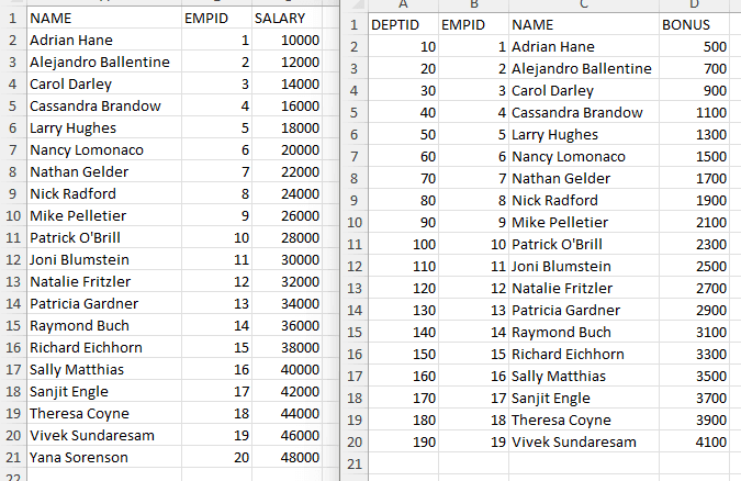 Let's say we had two Excel files that we wanted to blend, so that we could use fields from each file in the same visualization.