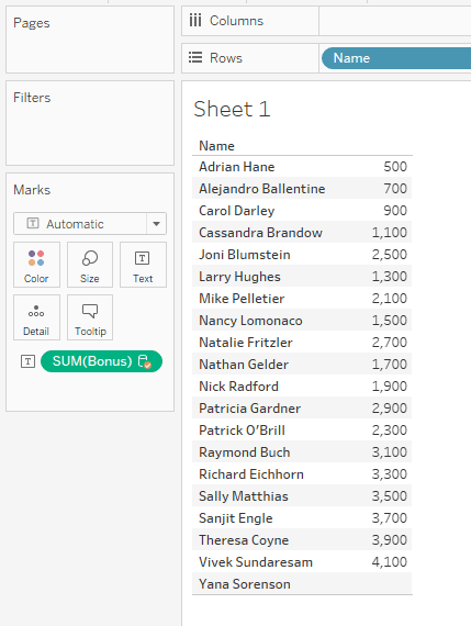 Now, grab the Customer name field to drag onto Rows, and grab the Sales field to drag it onto Text.