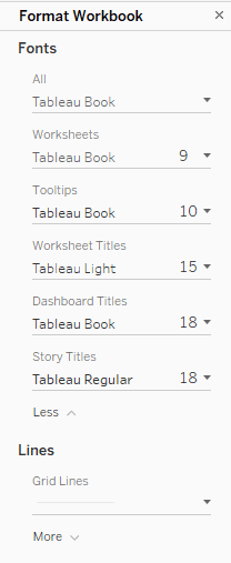 At this workbook level we can format the fonts and lines.