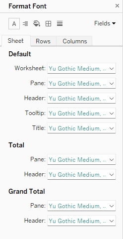 Click on the All dropdown under Fonts, then change the font from Tableau Book to your desired one.