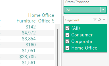 Then, right click on Segment in Columns and select Show Filter. Do the same for State/Province.